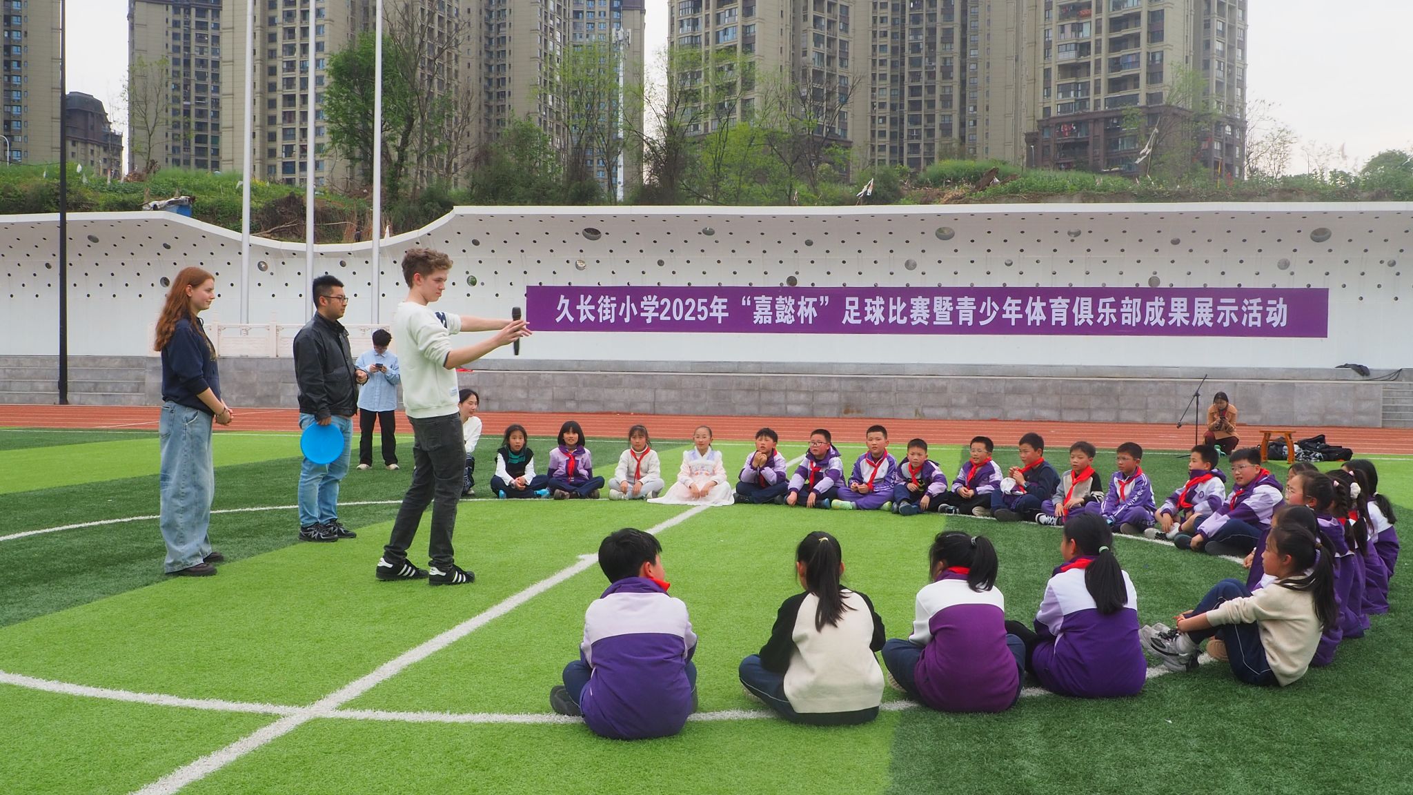 用语言讲述故事,用思辨探索世界,鱼城书院始终致力于拓展学生的国际视野。此次活动由国际教育学院张冰凌老师、两位德国留学生及鱼城书院自治委员会学生联合,与久长街小学师生共同参与,将鱼城书院的特色品牌“飞盘”“大鱼海谈英语角”活动带到小学,实现了大学、小学教育资源的深度联动。鱼城书院综合办主任金鑫老师表示:“文化因交流而多彩,教育因融合而丰富。我们希望通过这样的活动,让留学生近距离感受中国传统文化的魅力,也让中国学子在互动中培养跨文化沟通能力,真正落实大中小学一体化教育。”