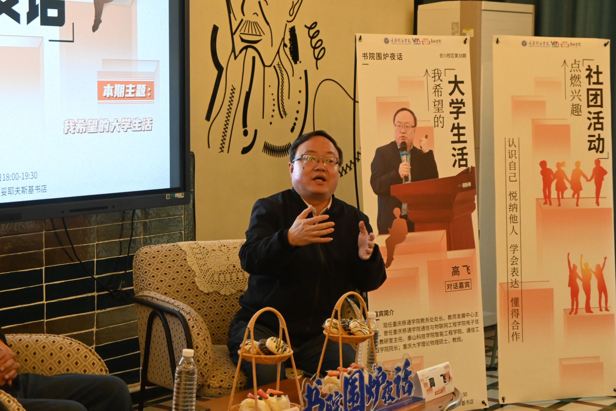 为搭建师生深度对话的优质平台,帮助学生高效规划大学生涯,引领学生在成长过程中构建正确的价值体系,助力培养具有信息产业专业技术背景的高情商经营管理人才,4月1日,由重庆移通学院教务处、书院部主办,鱼城书院承办的书院围炉夜话合川校区第三十八期在天空书院陀思妥耶夫斯基书店举办。本期围炉夜话邀请太原师范学院王林义教授担任主讲嘉宾,重庆移通学院教务处高飞处长担任对话嘉宾。两位师长围绕大学阶段的成长话题,从学业规划、职业探索、兴趣发掘等多个维度进行分享,在微光斑斓中思维共振、情感共鸣,共同探索大学生活的无限可能。
