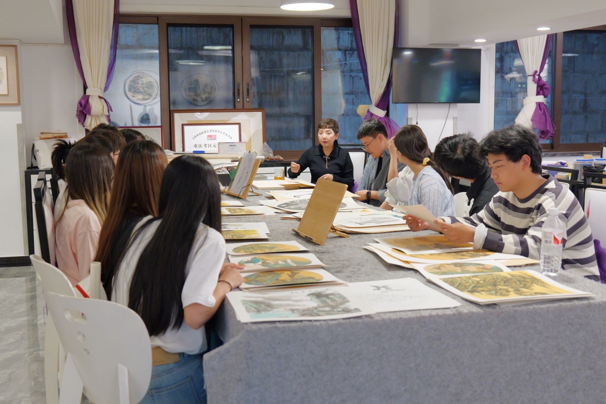 在院长画室中我看到了许多不同风格的画作,主要是花鸟画和山水画,每一幅都很惊艳,在这些画作中,我不仅感受到了重庆时代的变迁,还有山河无恙、国泰民安,在与院长交流的时候,又一次体会到了国家安全的重要性,这次的经历让我受益匪浅。