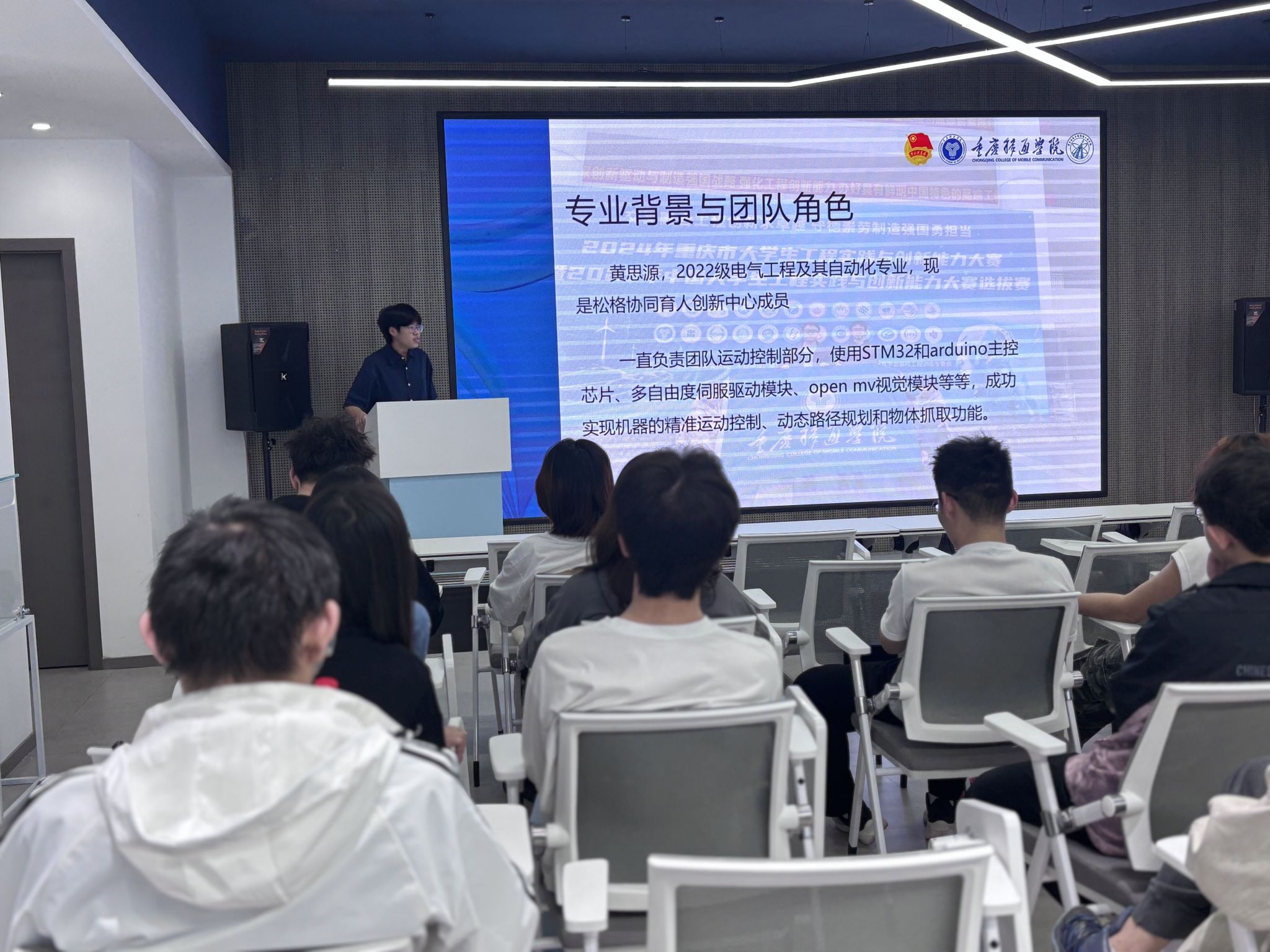 备赛期间,松格书院的项目工坊里那叫一个热闹,时常能看到同学们围聚在一起,你一言我一语地热烈讨论着作品,全身心沉浸在自我创作之中,反复做着试验,不断调整优化。从他们那一张张专注认真的面庞上,我深切感受到,这不只是一场简单的比赛,更是他们团队智慧碰撞、凝聚的结晶。为了帮助更多心怀创意,却不知如何将作品真正投入赛事实践的同学加入本次比赛,书院特别邀请学业支持中心里参赛经验丰富的朋辈导师黄思源学姐,为大家举办一场赛前专题交流培训活动。此次培训紧紧围绕机械结构设计、作品答辩技巧等关键要点,为学弟学妹们“精准赋能”,助力他们在竞赛中能够大放异彩。