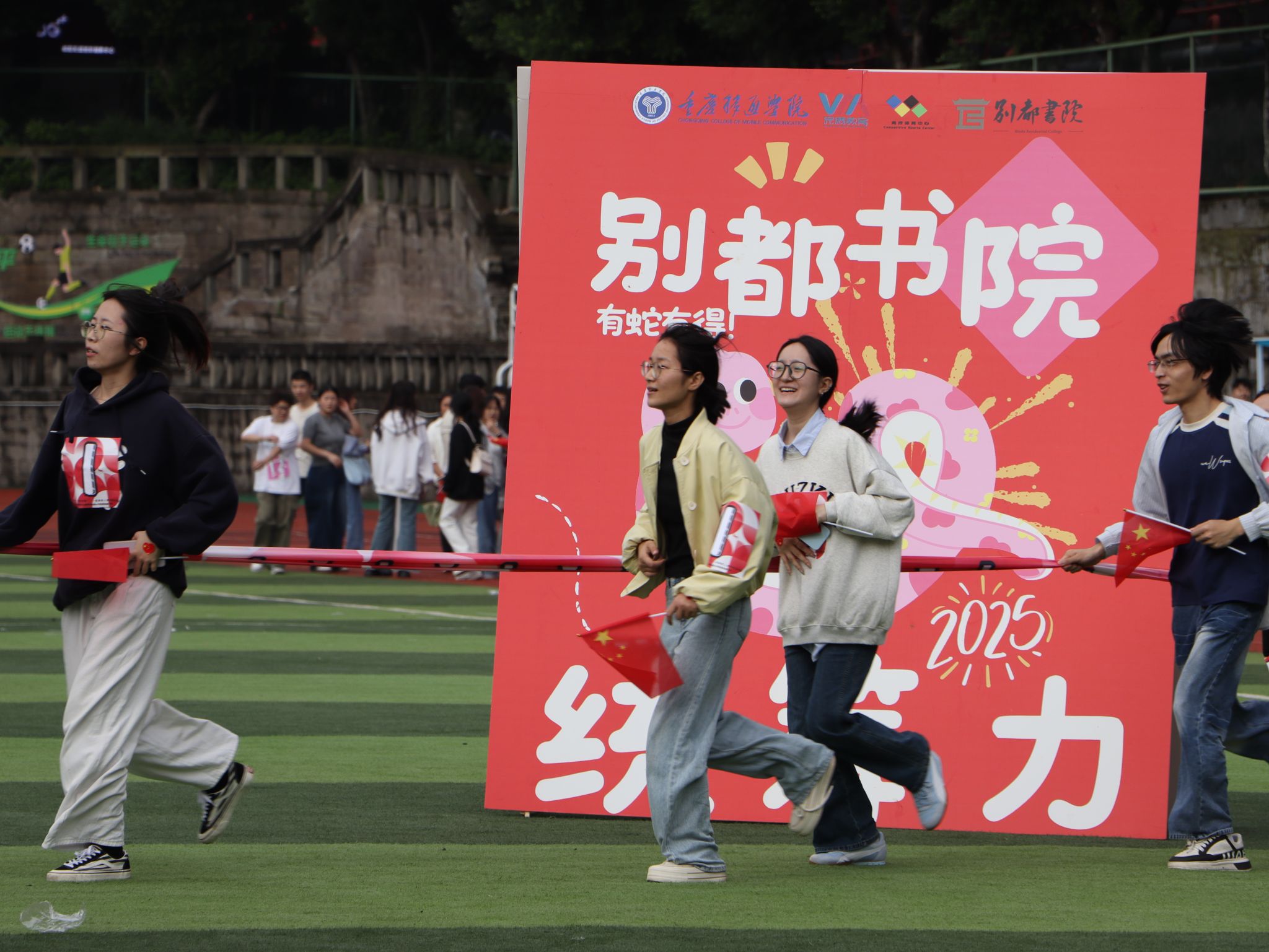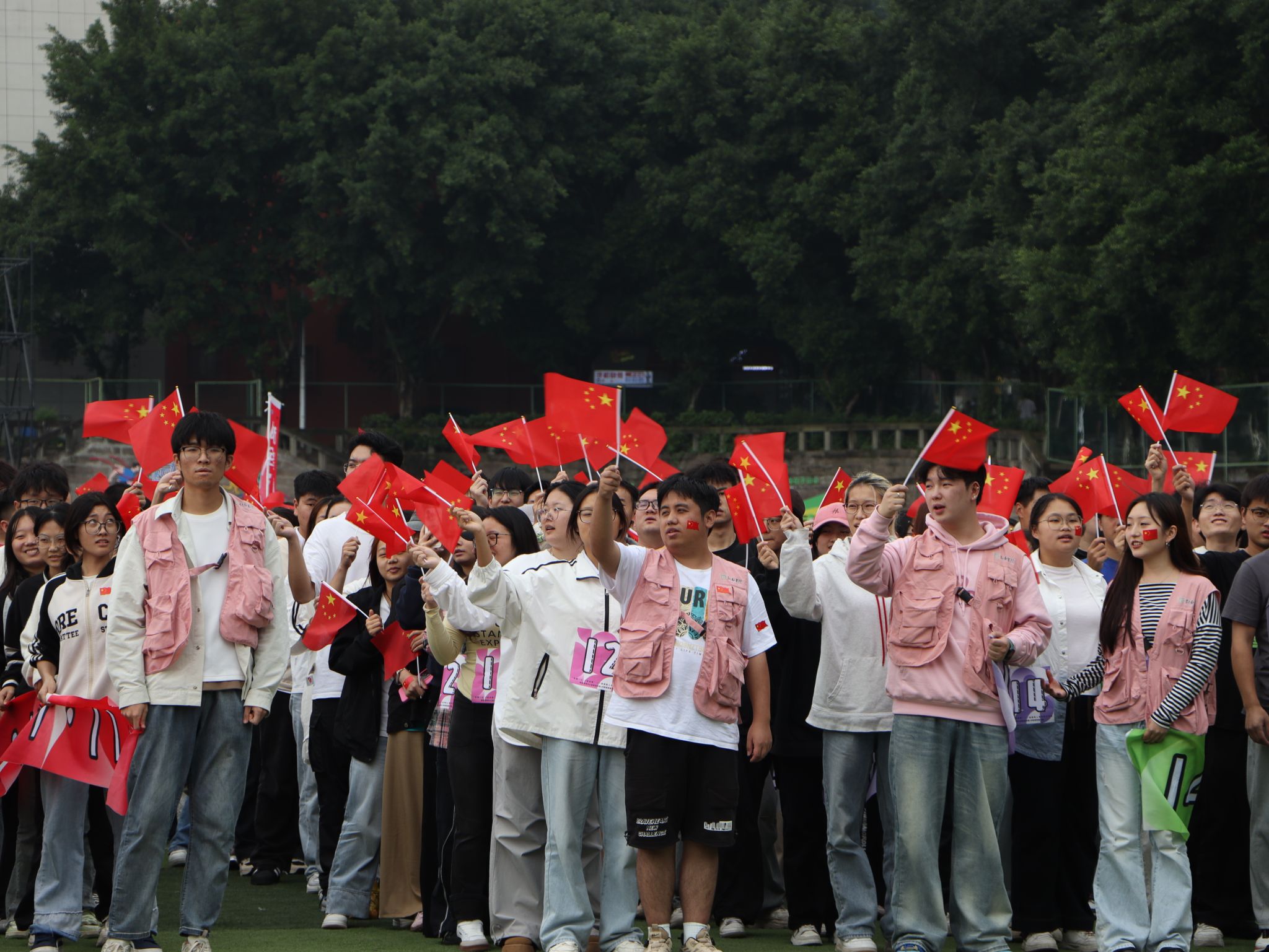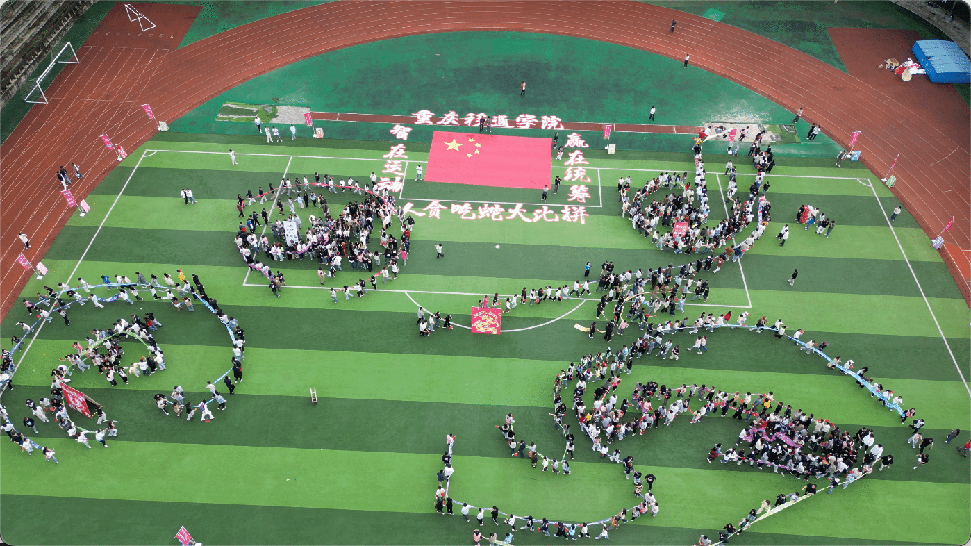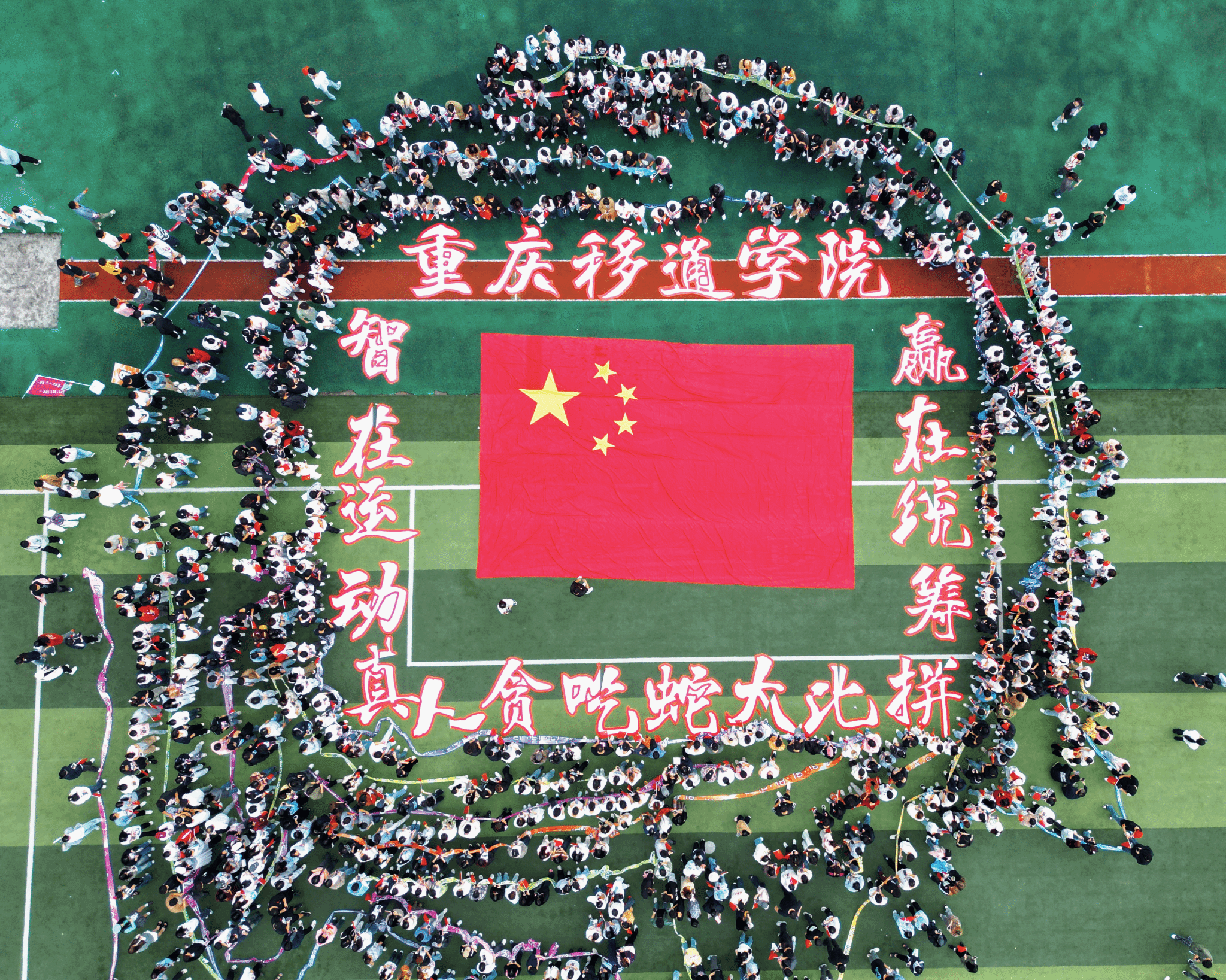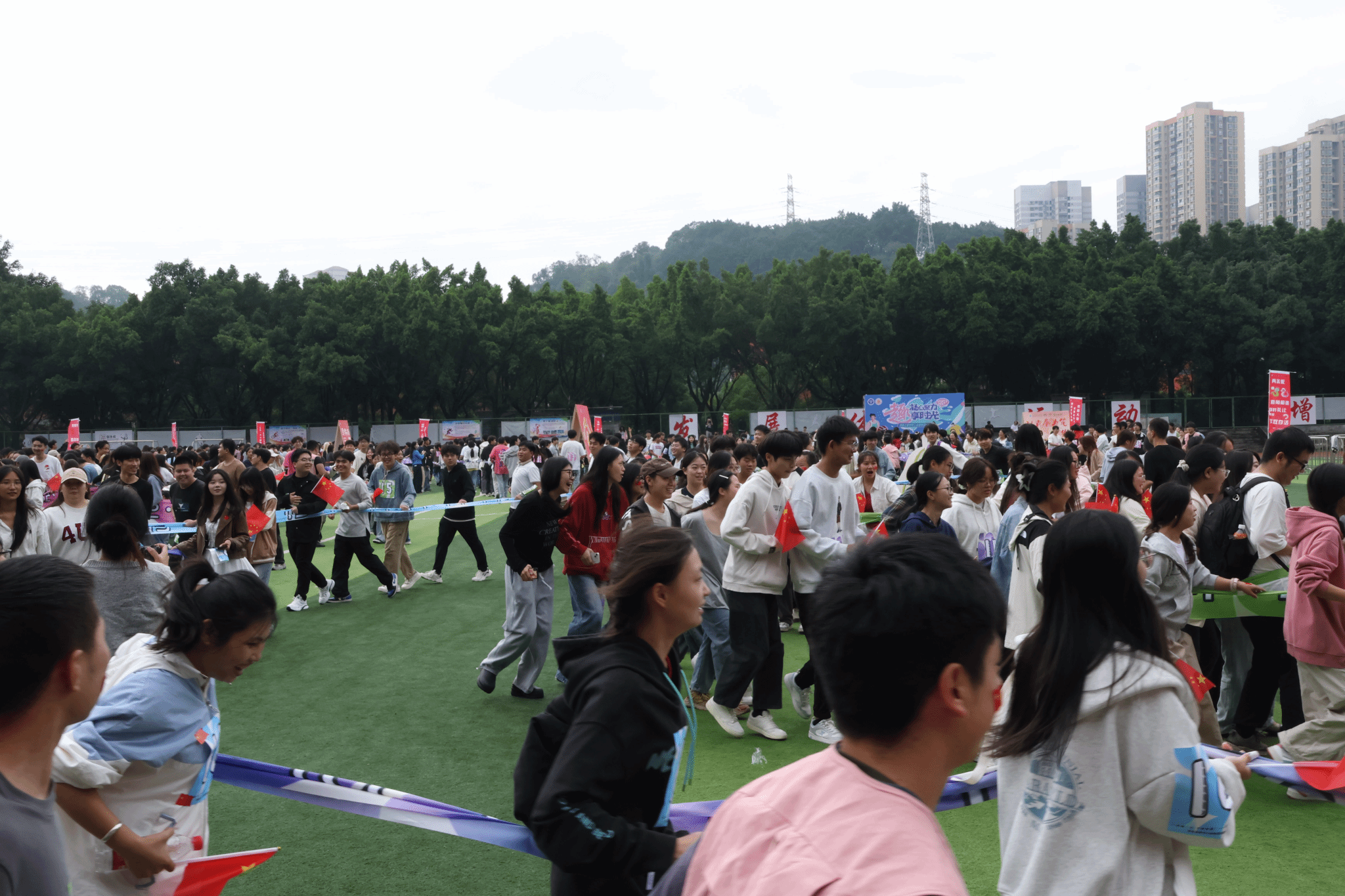 “我们玩的不是只是游戏,是能力的提升!”这正是本次活动的核心宗旨。别都书院与竞技体育中心通过“真人贪吃蛇”这一创新载体,成功地让“统筹力”这一抽象素养变得可感知、可训练、可提升,同时也让体育运动超越了单纯的强身健体,成为培养统筹思维与体育精神的综合舞台。活动现场,除了紧张刺激的挑战,还有令人动容的一幕。巨幅国旗在千人共擎下猎猎飘扬,青年学子们以《歌唱祖国》的嘹亮歌声向祖国深情告白。那一刻,青春的脸庞上写满了坚定与自豪,嘹亮的歌声中饱含着对祖国的无限热爱。这不仅仅是一场简单的创新活动,更是移通学子们将家国情怀内化于心、外化于行的生动体现。