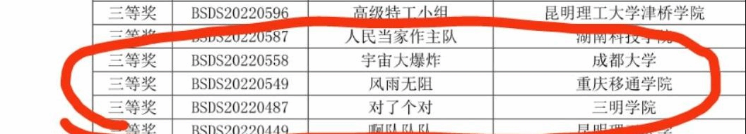 1 | 随机应队 | 张磊 龙瑞平 何嘉嘉 王紫婵 王婧薇 | 李红艳 张红 | 全国三等奖 |