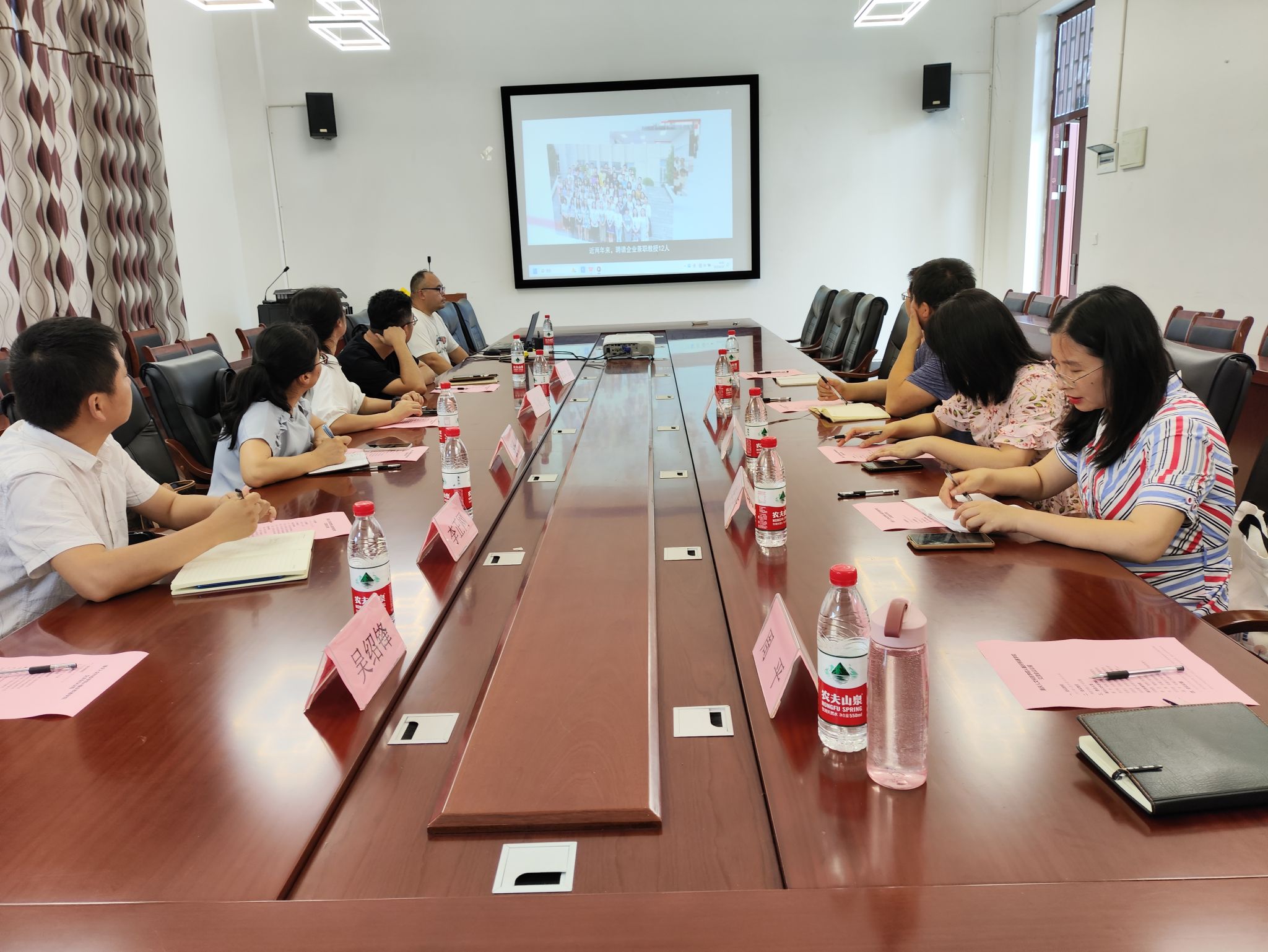 在梅若书院207召开交流会。会议伊始党晓圆院长代表学院向到访的嘉宾们表示欢迎。党院长就我校的概况、办学理念、办学定位、培养模式和培养目标进行介绍,并分享智能工程学院在专业建设、校企合作、师资队伍建设和实验室建设等方面的经验。详细地阐述了智能工程学院在人才培养方面的特色和优势,以及与企业现阶段的合作模式。随后重庆人文科技学院机电与信息工程学院院长强华分享了在专业建设、校企合作、师资队伍建设和实验室建设方面的经验,并介绍学院的优势学科和特色课程,以及与企业合作开展的实践项目等情况。