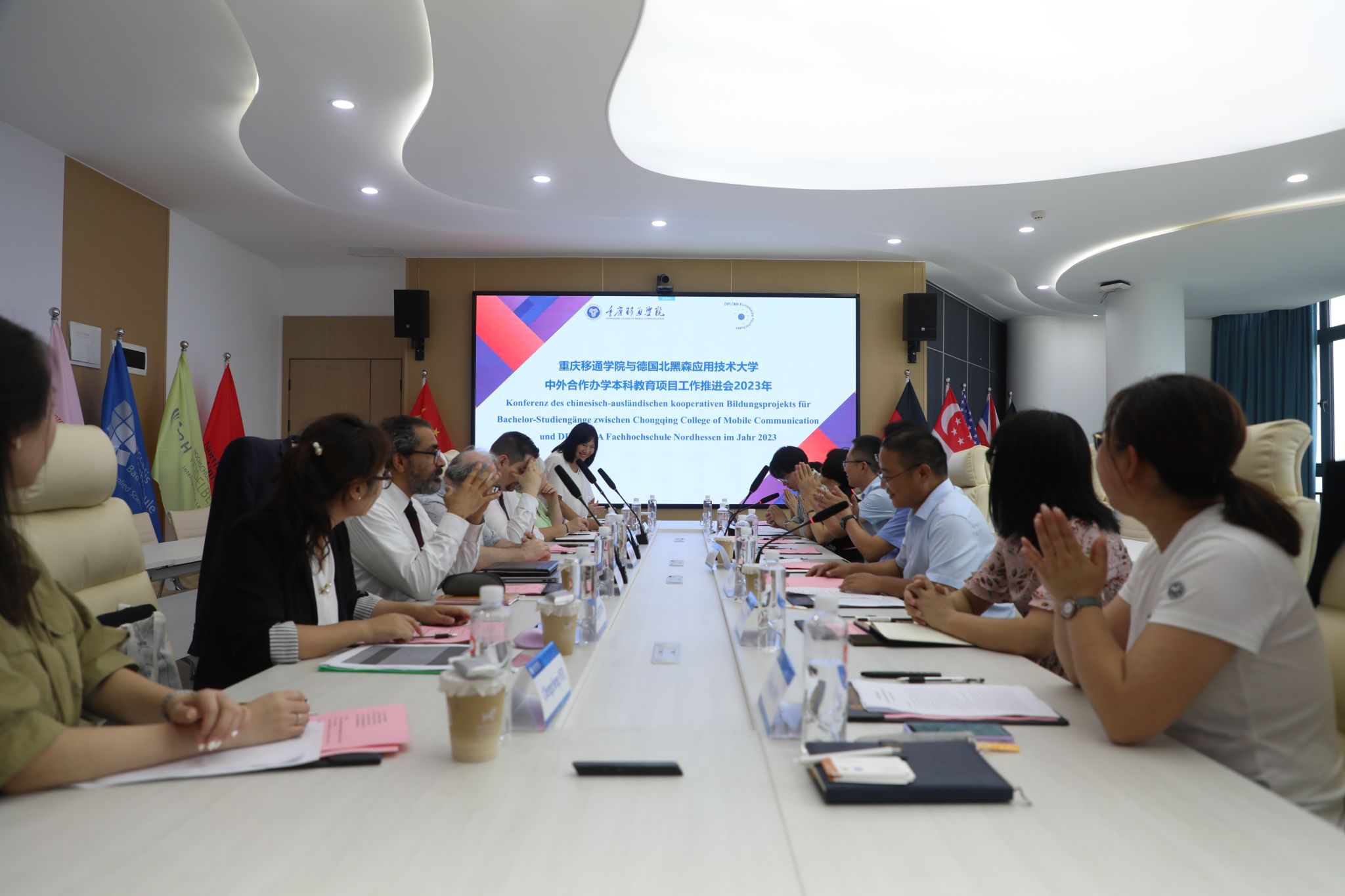 为共铸国际化未来,携手助力中外合作办学教育项目,9月11日,我校在天空书院云端会议室与北黑森应用技术大学代表一同开展“中外合作办学本科教育项目工作推进会”。北黑森应用技术大学副校长及学科负责人Michael Namokel教授,考试办公室联席主管Stephan Convent教授 ,国际处负责人HerrYolna Grimm,校长秘书Susanne Schulz,中国项目学生处负责人、翻译王丽,我校校长吕翊、副校长张衍学及相关负责人参与本次会议,德中教育文化交流协会北黑森项目负责人曾凡晋特别出席,会议由我校校长助理尹浩亮主持。