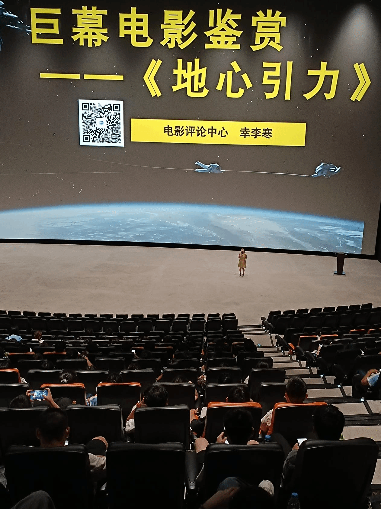 电影评论中心教师幸李寒讲到,本学期的新生体验课《巨幕电影鉴赏》可以说是应运而生,影院落成、新生入校,佳片有约!在做映前导赏时,“我们关掉手机,共同沉浸在电影中,与在场近400人一同落泪,一起惊呼,这是在影院共同观影的无限魅力。”她希望通过这场巨幕电影鉴赏课,新生们能借助电影建立起与他人的联系。借助影院极佳的设备,科幻电影《地心引力》让同学们身临其境感受巨幕的视听震撼。未来,在巨幕电影院上电影鉴赏课会是常态,我希望带领更多的同学走进电影院,通过大银幕,到达更幸福坚定的未来!