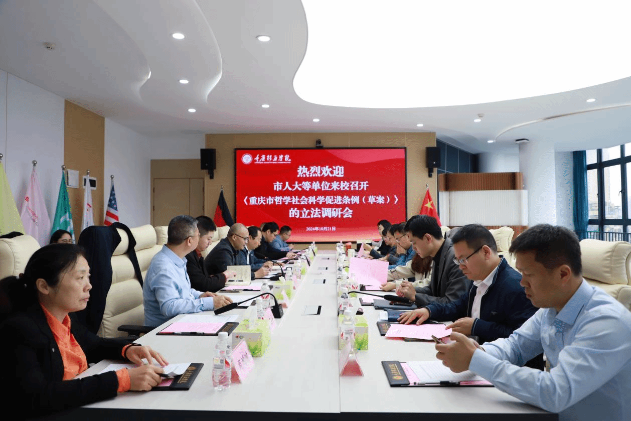 10月21日上午,《重庆市社会科学促进条例》(以下简称《条例》)立法领导小组莅临我校调研哲学社会科学,并召开《重庆市哲学社会科学促进条例(草案)》立法调研会。