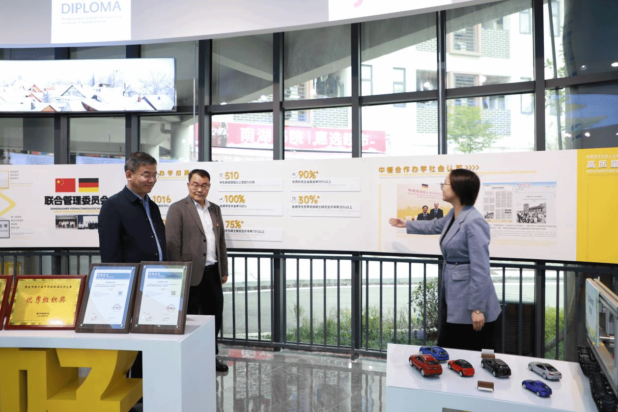 张立荣一行参观了我校远景书院、爱莲书院、南湖书院,深入了解了我校学生社区书院制、导师制小班化以及教学环境等。他们对我校“四位一体双院制+特色课程”特色人才培养模式及国际化战略成果表示赞赏。