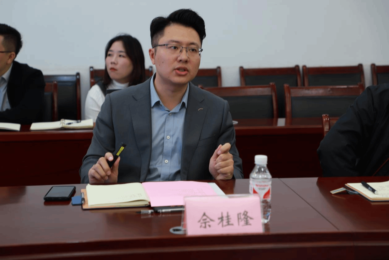 就业创业指导与服务中心副主任佘桂隆介绍了学校就业指导相关情况,学校进行了校园内部调研,结合内外问题,针对如何补齐短板,提升学生的高质量就业。学校针对学生实际情况,开展了一系列措施:让学生到各企业实习,参观不同工厂产业,举办求职体验节,开创双创先锋班等。