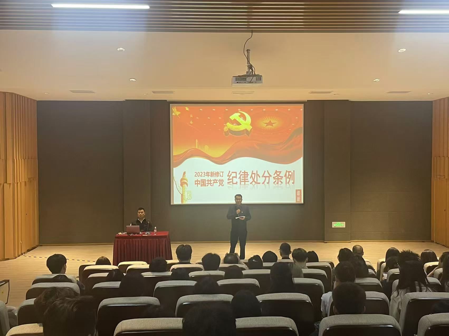 随后,刘鑫组长结合师德师风、科研建设、基建后勤、招生考试等日常实际案例,分别就《中国共产党纪律处分条例》中的政治纪律、组织纪律、廉洁纪律、群众纪律、工作纪律、生活纪律展开详细的解读。在讲解过程中,刘鑫组长既注重理论指导,又通过案例进行深入浅出、生动详实地讲解,教育师生干部进一步学纪、知纪、明纪、守纪,把遵规守纪刻印在心,内化为言行准则,进一步强化纪律意识,加强自我约束,提高免疫力,增强政治定力,纪律定力,道德定力,抵腐能力,始终做到忠诚干净担当。他强调,各党员干部要认真对照《中国共产党纪律处分条例》规定,全面深入细致自责自省,检视个人在遵守“六项纪律”方面存在的薄弱环节,切实用党的纪律校正思想和行为。要在严以修身上再加力,把增强党性、严守纪律、砥砺作风融入日常,时刻绷紧党规党纪这根弦,不断改进工作作风,严明纪律强保障,努力把他律要求转化为内在追求。
