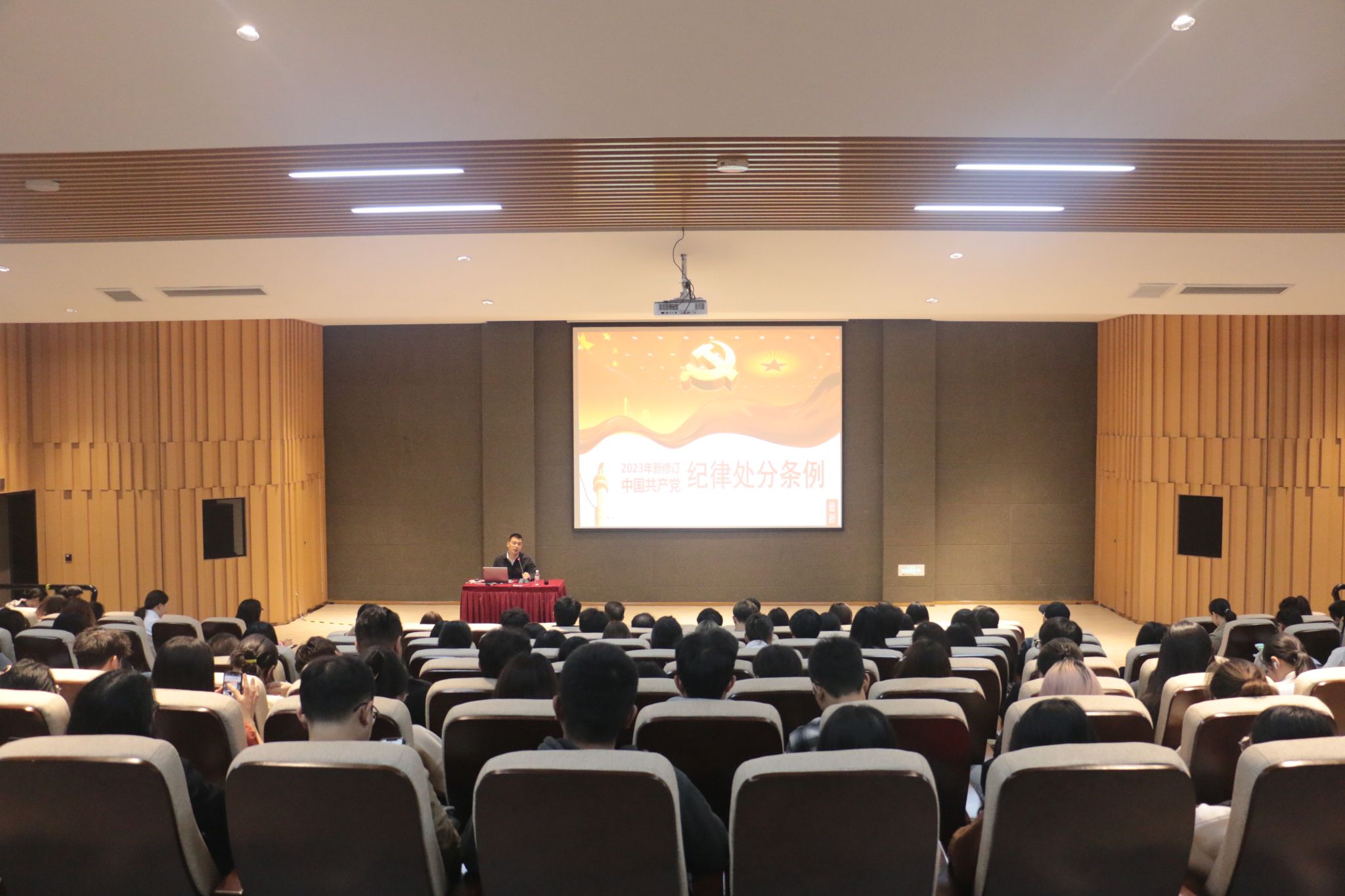 为深入学习贯彻习近平总书记关于全面加强党的纪律建设、作风建设的重要论述和视察重庆重要讲话重要指示精神,引导广大党员干部知纪于心、履纪于行、守纪于常,持续巩固党纪学习教育成果,11月14日,市纪委监委驻市教委纪检监察组副组长刘鑫走进移通学院,开展了一场题为《以案明纪—中国共产党纪律处分条例解读》的专题讲座,为全校师生党员就新修订的《中国共产党纪律处分条例》进行了深入的解读,并强调了加强党的纪律建设的重要性。讲座由我校党委书记、政府督导专员何先刚主持,在家校领导,各基层党支部书记、纪委委员及师生代表200余人参会。