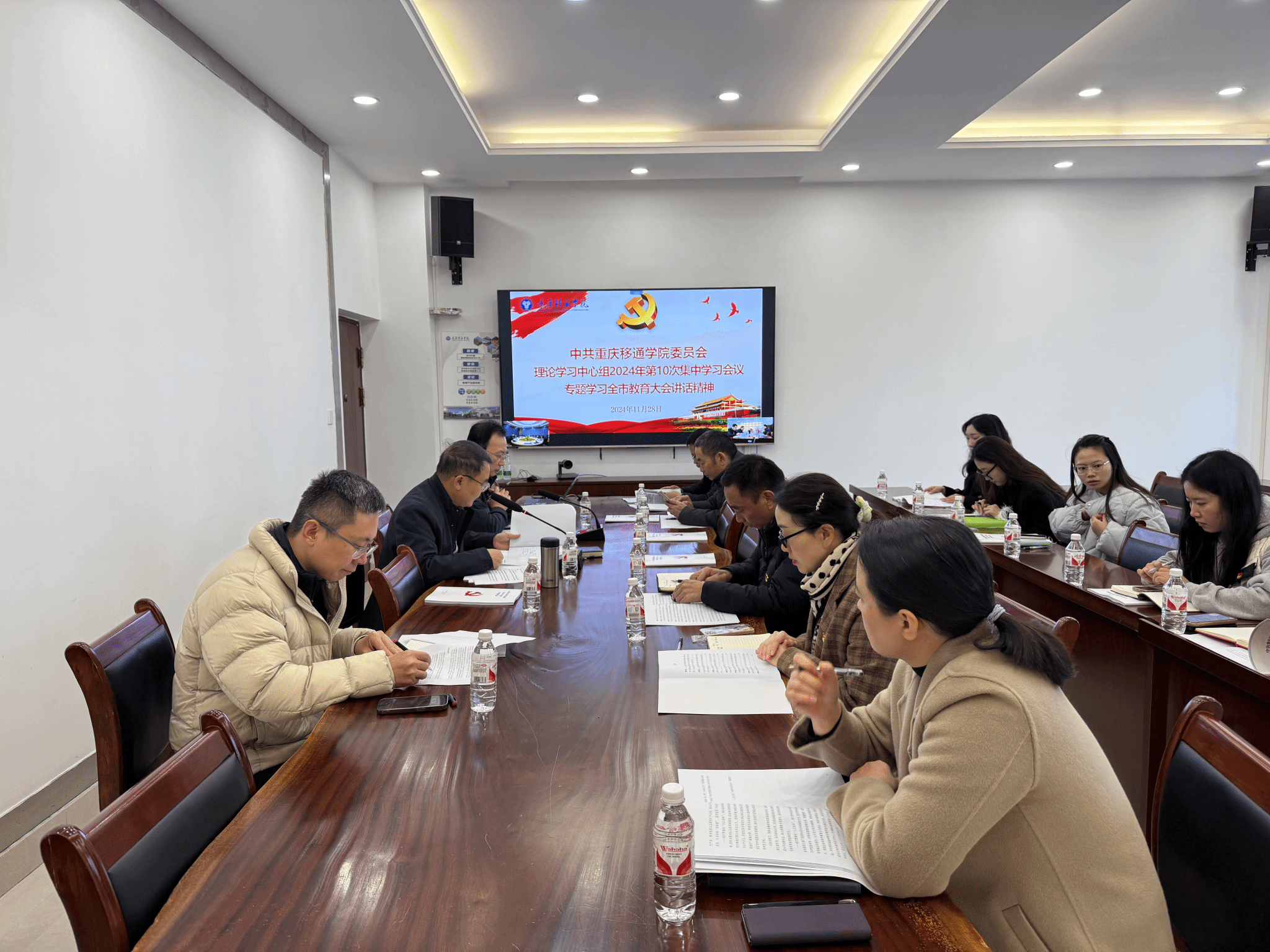 11月28日下午,党委理论学习中心组在行政楼417会议室,围绕“学习贯彻全市教育大会讲话精神 奋力谱写中国式现代化重庆篇章”主题,召开党委理论学习中心组2024年第十次集中学习会。校党委书记、政府督导专员何先刚同志主持学习会议,党委理论学习中心组成员参加学习,綦江校区线上同步开展学习。
