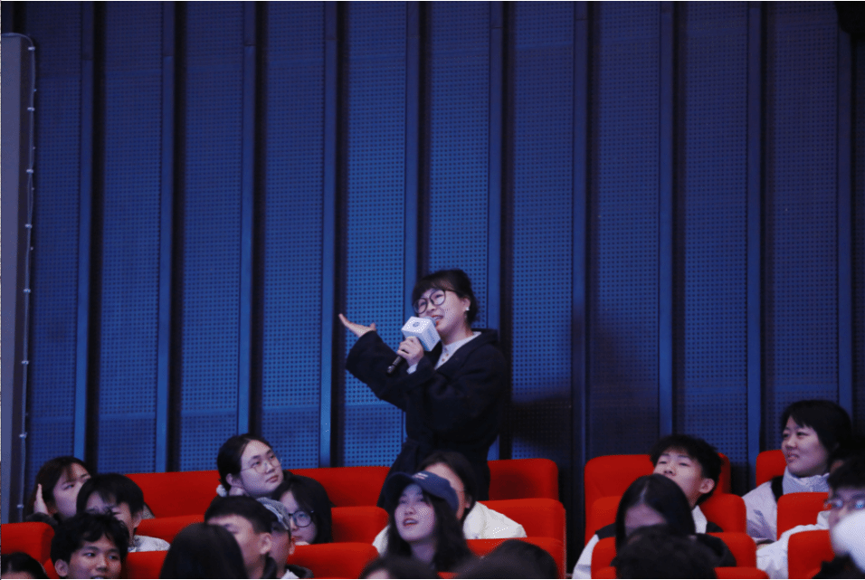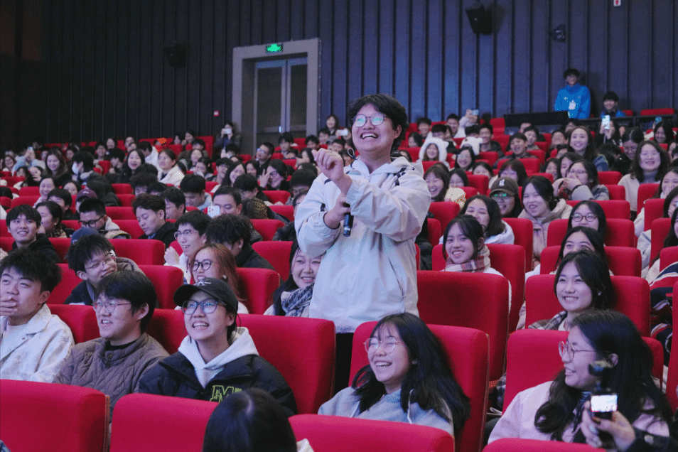 在场同学珍惜提问机会,纷纷举手发言,渴望进行更深入的交流。其中不乏部分情绪激动,眼中闪烁着泪光,声音也变得哽咽,分享“偶像”如何影响生活和梦想。更有甚者表示,自己作为学校初代辩论队成员对这次讲座充满期待,尽管已经毕业,为了参加这次讲座特意请假回到学校。