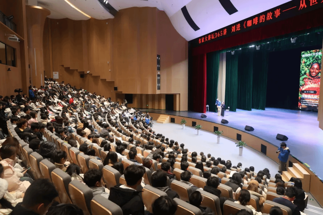 “咖啡的故事,从世界到中国,我们的目标是再回到世界,希望把中国的文化带到世界的各个角落。咖啡的奇迹要靠在座的你们这一代更年轻的人来创造。”讲座中,刘进的真诚分享赢得在场师生的热烈掌声。