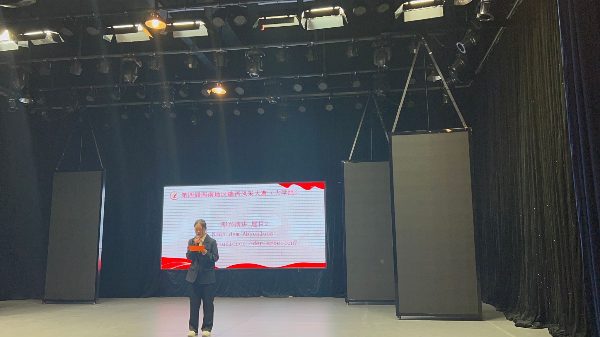 在刚刚结束的第四届西南地区德语风采大赛中,重庆移通学院外国语学院的学子们以其卓越的表现赢得了评委和观众的一致好评,荣获团体三等奖。此次大赛于11月30日在绵阳师范学院举办,吸引了来自西南地区多所高校的优秀选手参与。本次比赛分为命题演讲、即兴演讲、视频配音以及趣味猜词四个环节,全面考验了选手们的德语应用能力和现场应变能力。