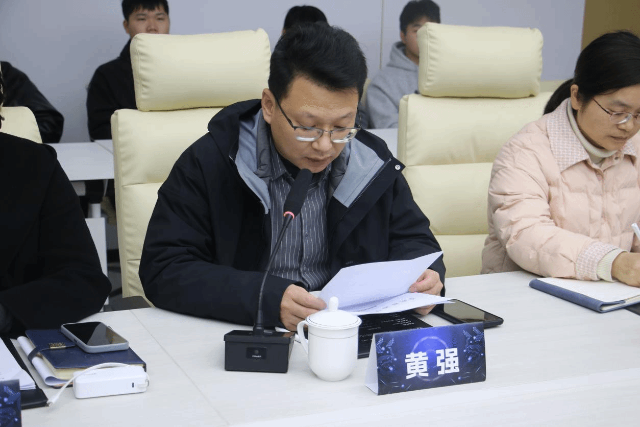重庆移通学院人力资源处处长黄强宣读国际数字贸易产业学院成立及任命的文件。