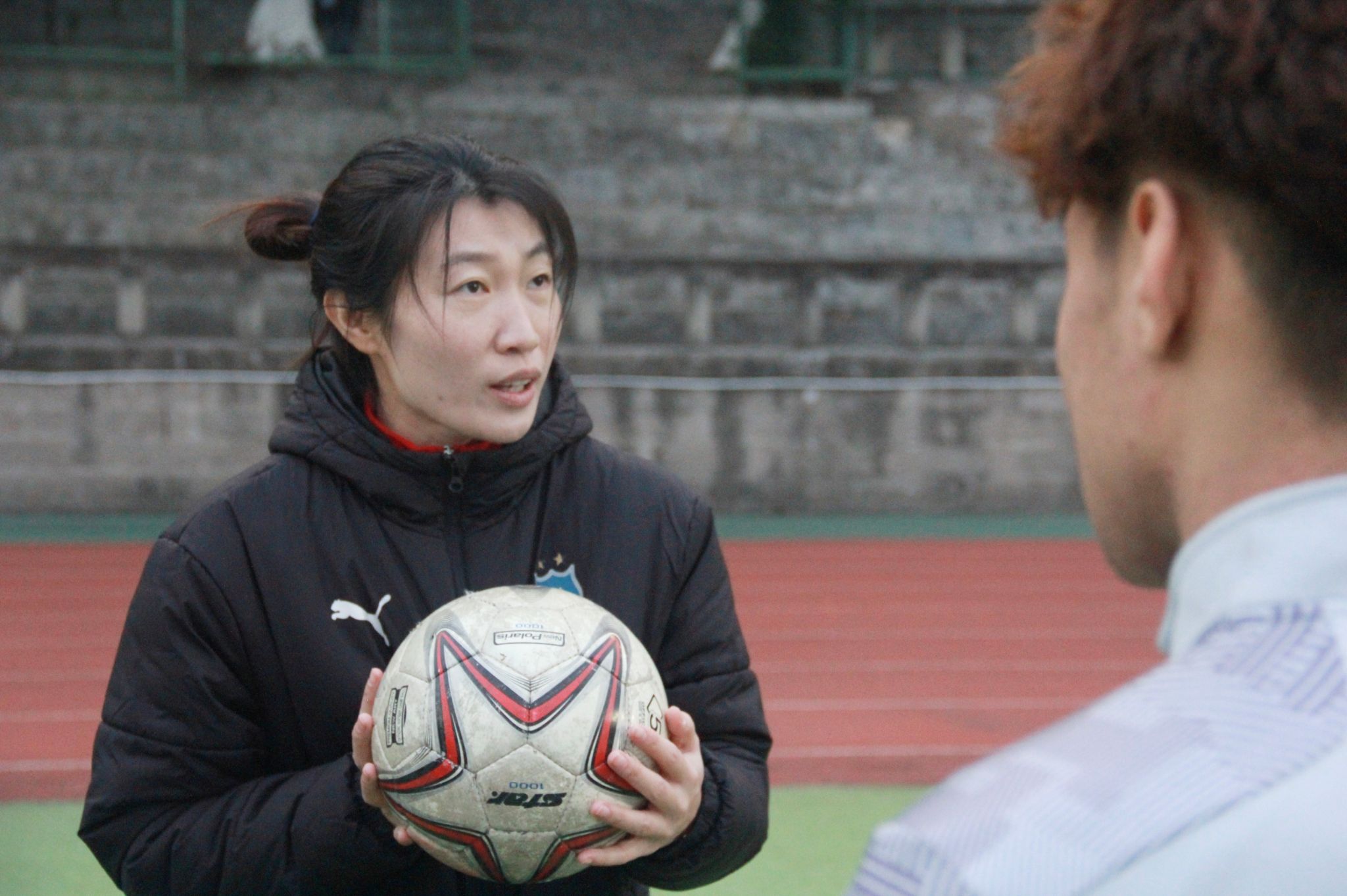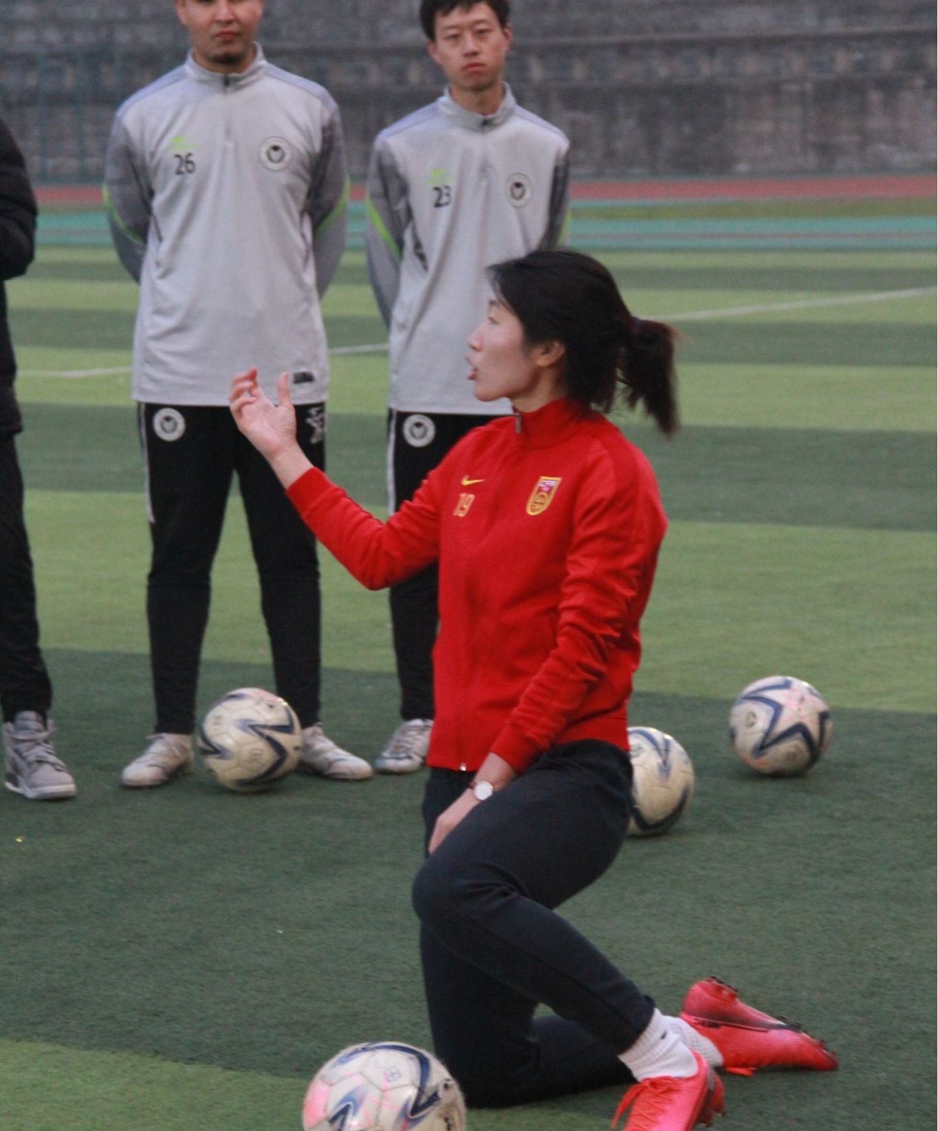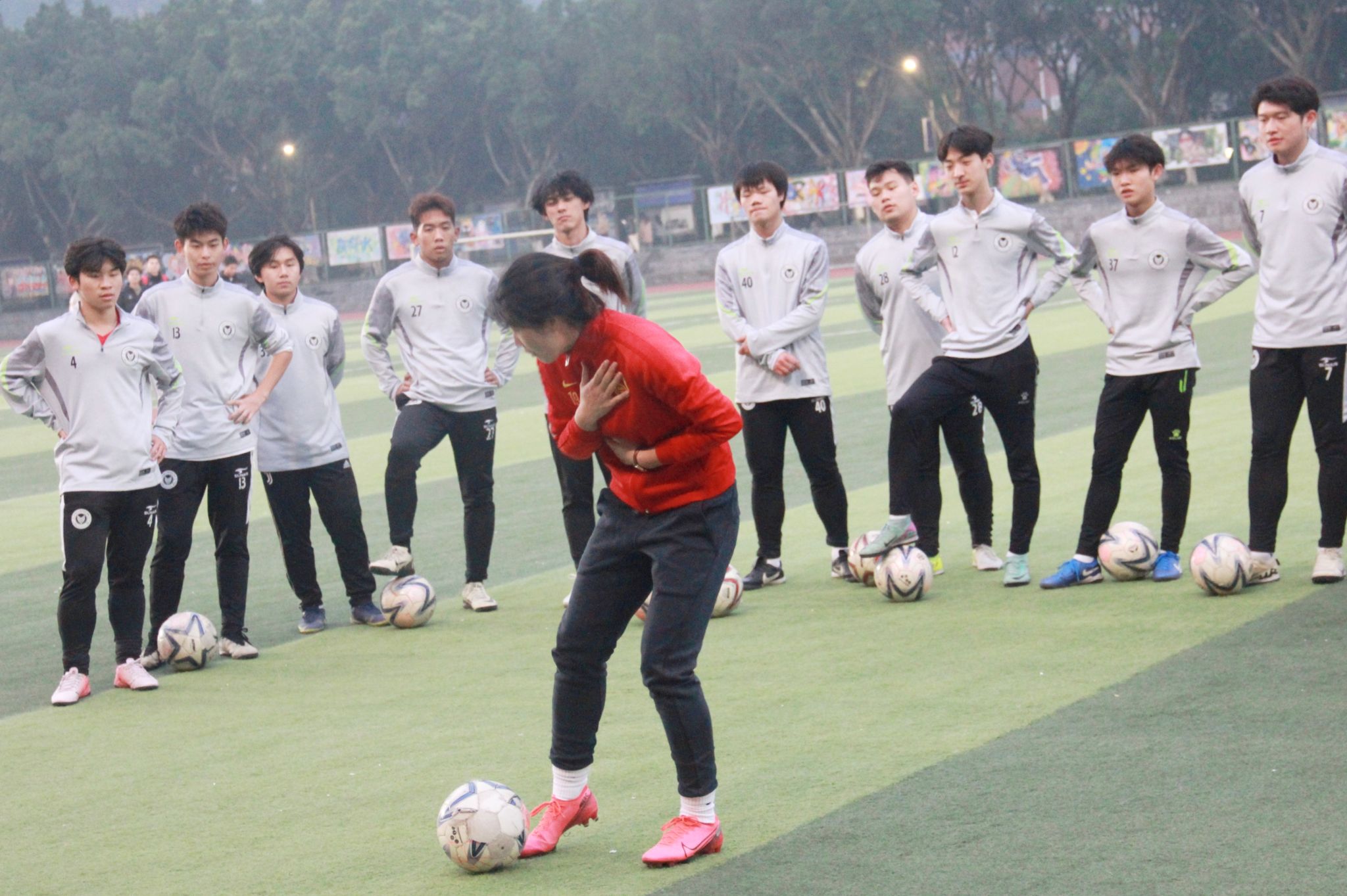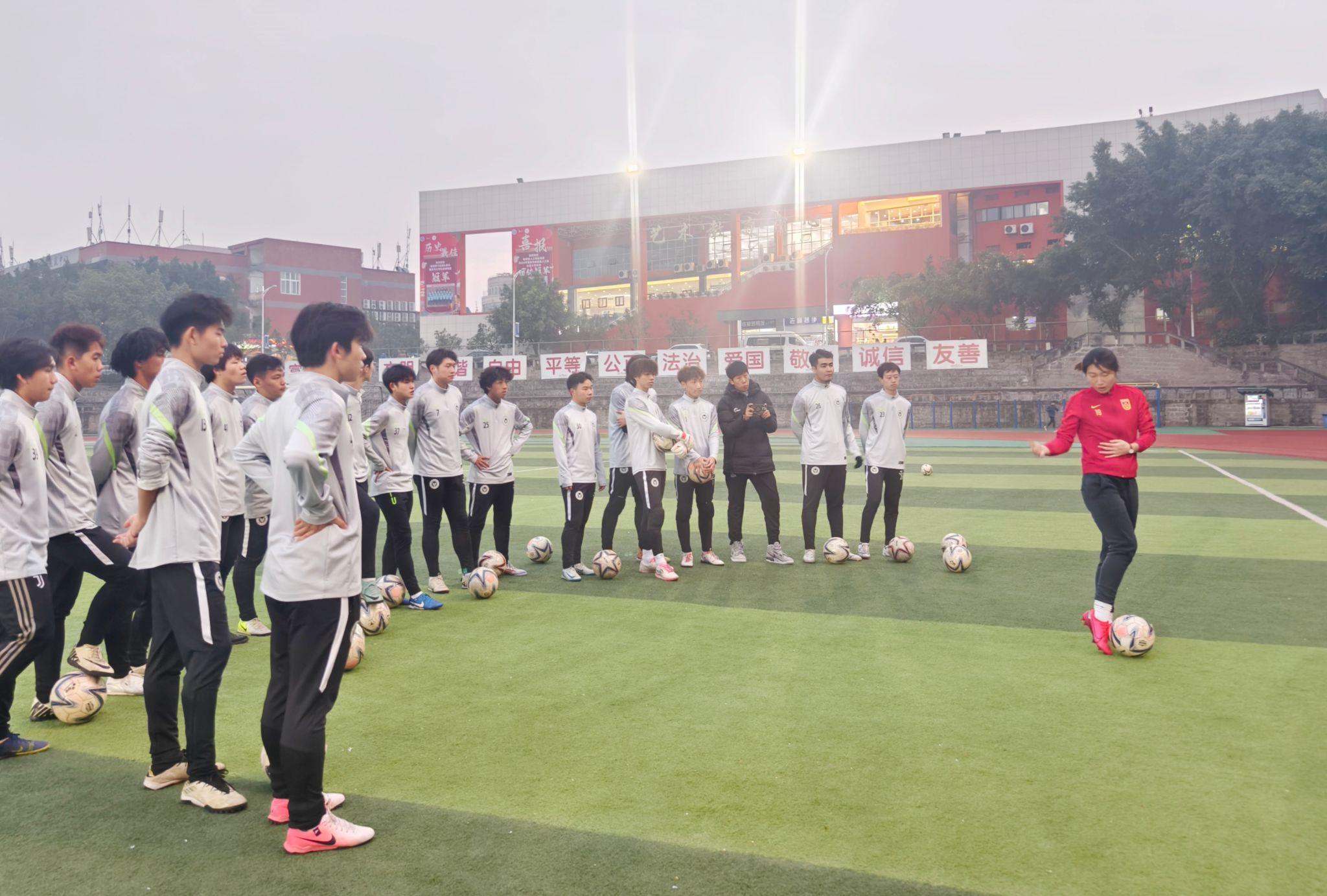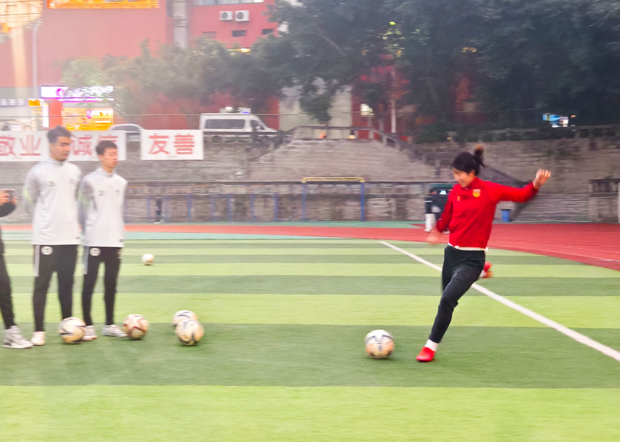 她针对重庆移通学院足球校队队员们在高远球及其他几项足球技巧上存在的不足,进行了细致入微且极具针对性的技术指导。