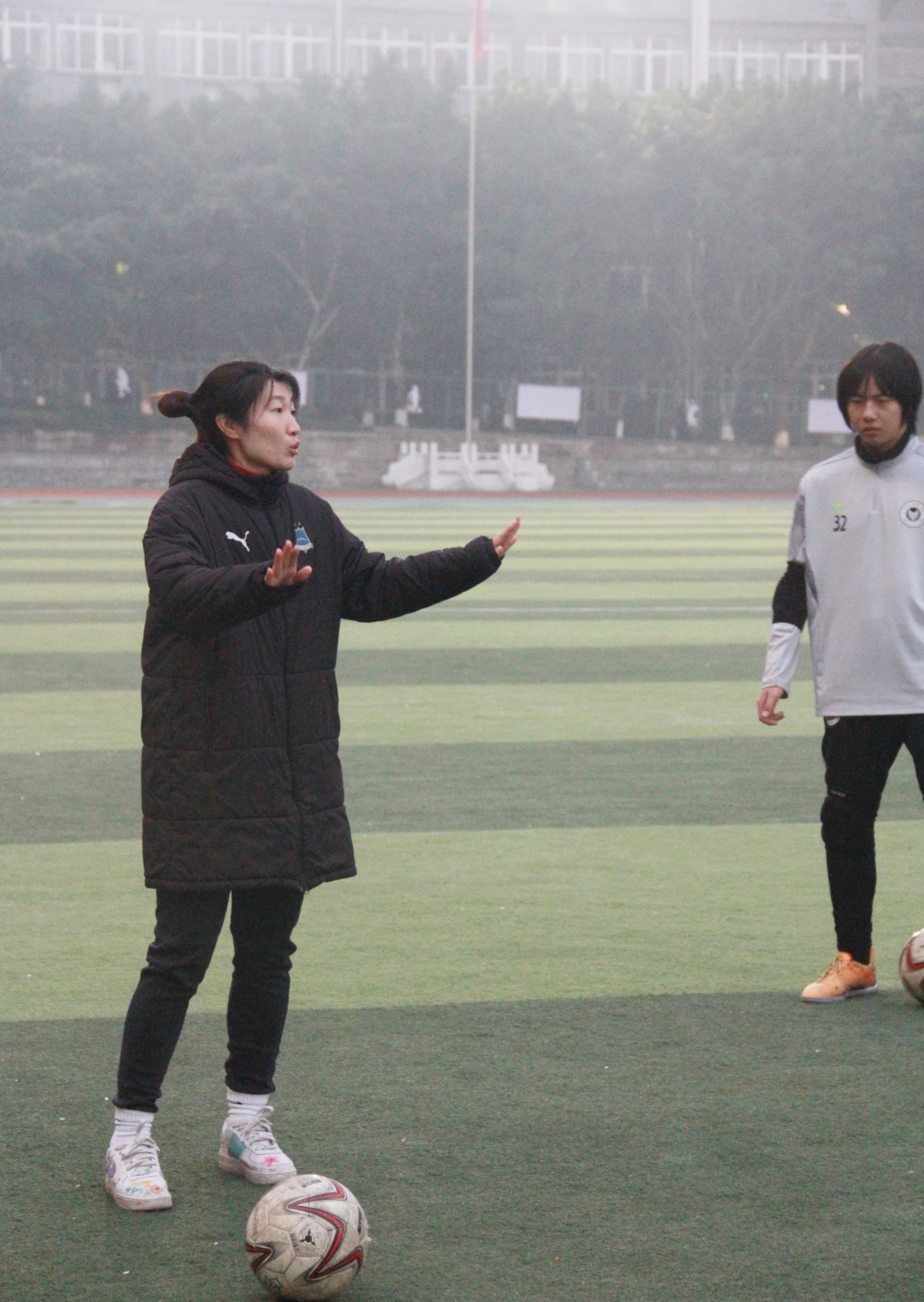 她亲自示范标准动作,从助跑节奏的把握、身体的协调发力,到触球瞬间的部位选择和角度控制,每一个细节都讲解得清晰透彻。校队队员们全神贯注,紧紧跟随王焱的指导节奏,反复练习,逐渐掌握了更加规范、高效的技巧动作,在球场上的表现也有了显著提升。