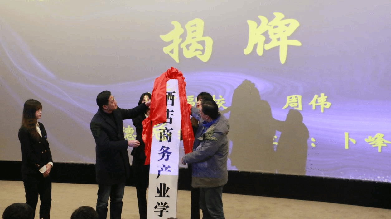 12月23日,重庆移通学院与卡德尼雅酒店携手共建的酒店商务产业学院在合川校区六度空间81/2(电影)放映厅揭牌成立。重庆移通学院常务副校长周伟、副校长陈仲华、校长助理刘枚、校长助理兼淬炼商学院院长张平,卡德尼雅酒店总经理卜峰、经理宋长荣,以及合川校区人力资源处处长黄强、电影商务产业学院副院长张云潇、淬炼商学院副院长曾璐、陈晓曼等出席仪式。