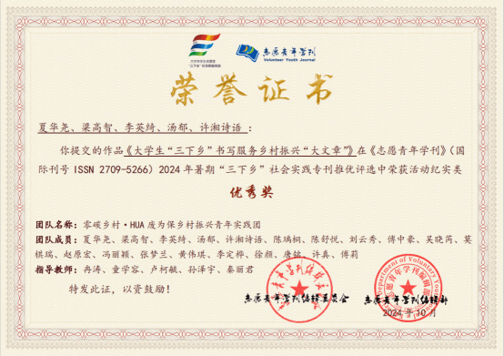 10月,由志愿青年学刊编辑部开展的2024年暑期“三下乡”社会实践专刊稿件征集评选结果揭晓,我校共斩获集体和个人共23项荣誉!5名“优秀指导教师”,17名同学荣获活动纪实类优秀奖。