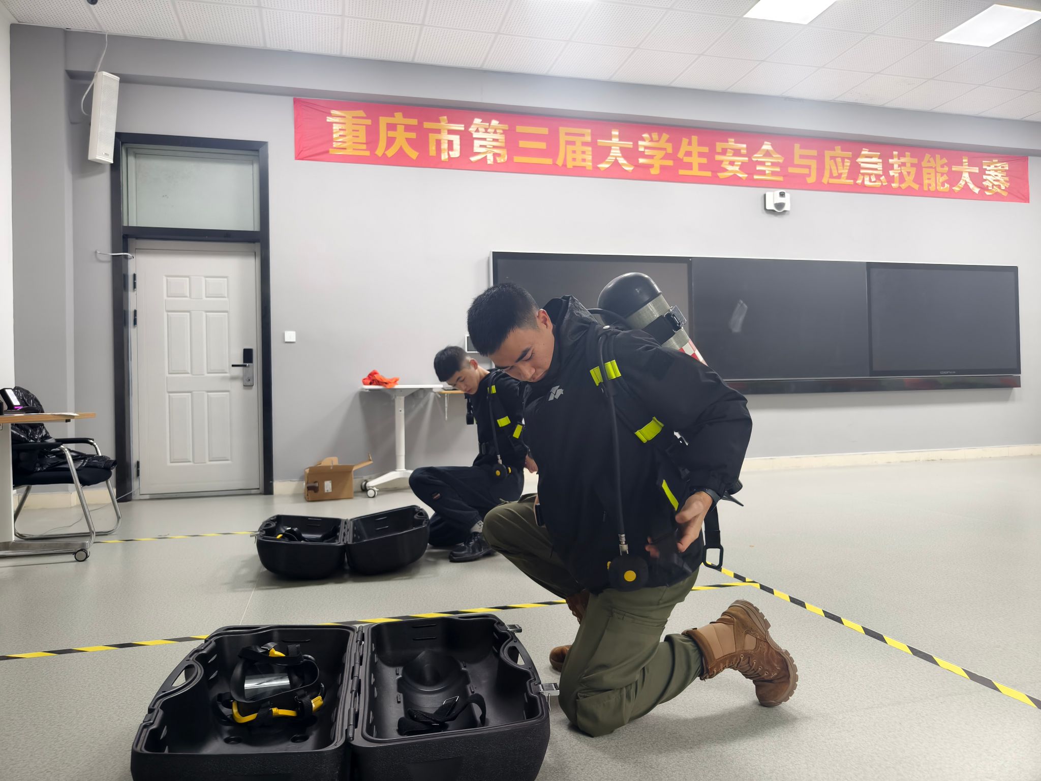 大赛得到了众多高校的积极响应,45所川渝高校,其中还吸引了一所远道而来的辽宁工程技术大学,138支队伍近700余名师生参赛,竞赛分为应急技能竞赛和应急预案设计竞赛两个部分。大赛以“夯实‘救’的基础,提升‘防’的水平,筑牢应急保障能力”为宗旨,设有应急技能竞赛和应急预案设计竞赛两项。应急技能竞赛涵盖正压式空气呼吸器操作、灭火操作、心肺复苏术、急救技术4个项目,全面检验参赛队员的综合身体素质与应急设施设备使用技能。