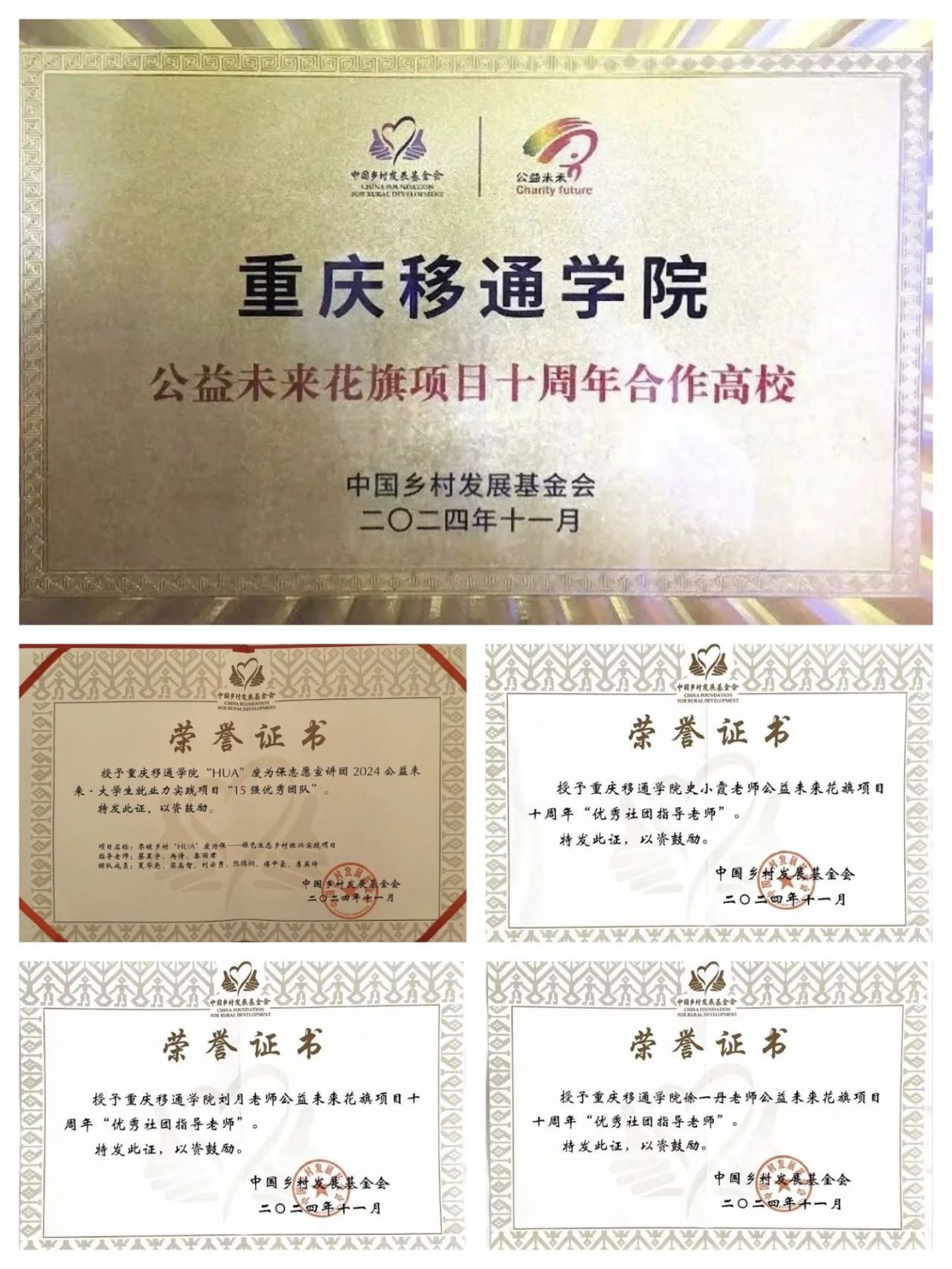 重庆移通学院聚焦留守儿童教育、乡村产业振兴、城市社区治理等核心议题,累计提交调研报告200余份,超50项建议被合作政府部门、社区、机构等采纳。其中,学校通过“乡村振兴青年行”助力20余个乡村产业升级,获全国“三下乡”优秀团队称号,推动10余项农副产品线上销售;“互联网+可再生”微公益志愿服务开展旧衣服、旧玩具等志愿服务活动,一对一对口捐献到贵州乡村,实现资源再次利用,荣获公益未来·玛氏箭牌垃圾投进趣全国优胜奖;“留光衣彩”关爱老人行动专注于老年人情感慰藉及精神文明建设,以“1+1+N”的方式通过为金婚老年伴侣拍摄结婚照、策划举办集体婚礼、制作《爱情保鲜手册》、开设电子产品教学、合唱等课堂,加强老年人日常文化建设,荣获第五届中国青年志愿服务项目大赛铜奖;“三江红丝带”防艾志愿服务以“积极参与艾滋病防治工作,为保障人民身体健康和加强精神文明和物质文明建设服务”为宗旨,积极组织、动员社会各界人士共同参与艾滋病防治工作,关爱、帮助艾滋病感染者、艾滋病患者及艾滋病致孤人员,连续7年登榜重庆市艾滋病防治宣教公益创投大赛……