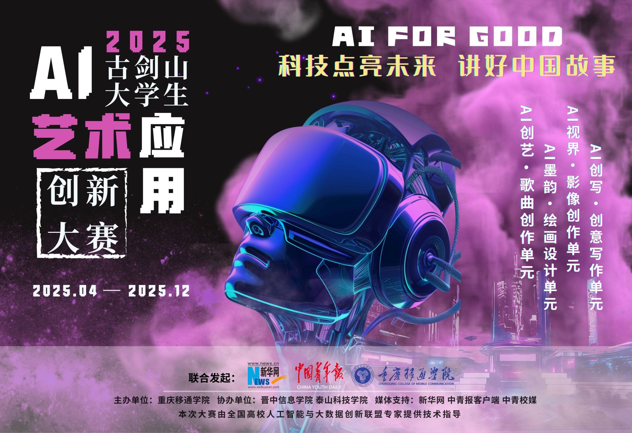 由重庆移通学院、新华网、中国青年报社联合发起,晋中信息学院、泰山科技学院协办的“2025古剑山·大学生AI艺术应用创新大赛”于3月24日正式启动,报名时间将持续至7月。