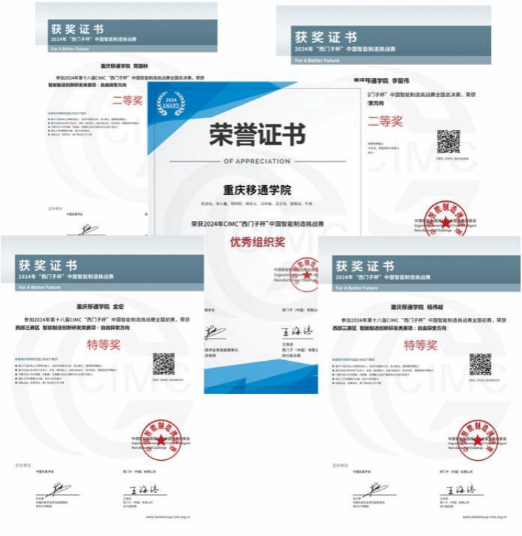2024年,重庆移通学院以全年斩获997项学科竞赛大奖的惊人成绩,交出一份亮眼答卷。其中,国家级奖项174项、省市级奖项823项,总计997项创历史之最,涵盖人工智能、电子设计、创新创业、艺术设计等多个领域。这一成绩不仅刷新了我校学科竞赛的纪录,更成为其学校“信息产业商学院”办学定位与“四位一体双院制+特色课程”特色育人模式彰显成效的生动注脚。