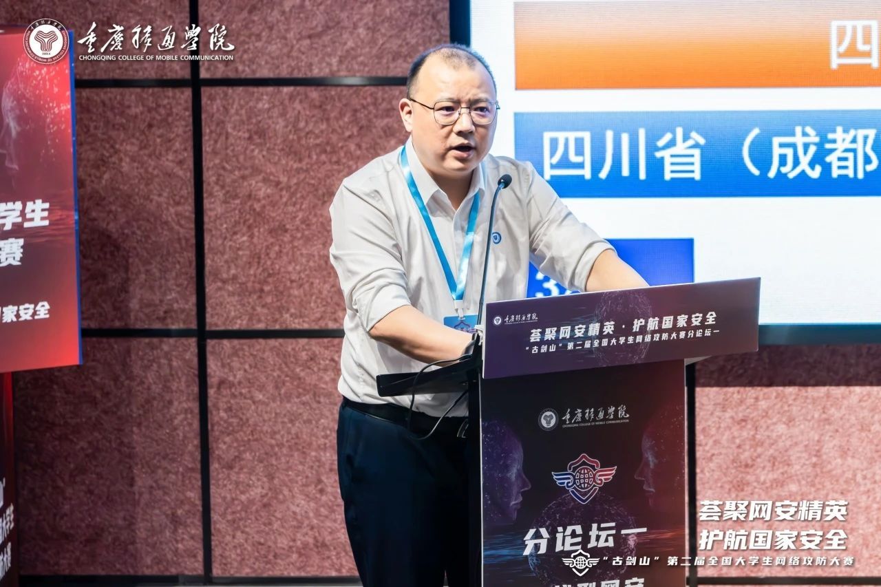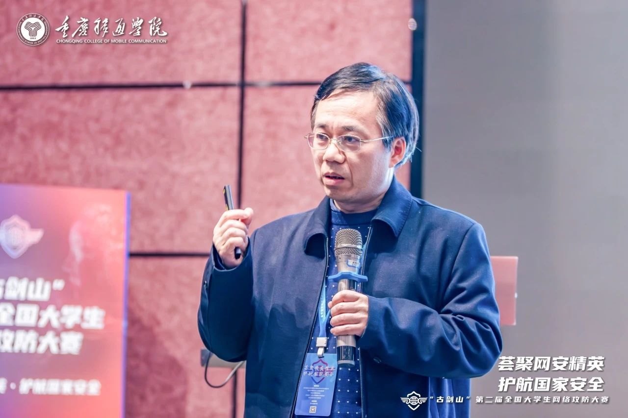 论坛开幕式上,重庆市綦江区政协副主席唐应良认为本次“古剑山”全国大学生网络攻防大赛为全国大学生提供了一个展示才华、交流经验、提升能力的广阔舞台,充分体现了重庆移通学院在服务国家战略、推动网络安全教育方面的担当和作为。他向在场学生及广大青年科技人才提出三个期待:一是做技术创新的尖兵,更做建言献策的谋士;二是做代码世界的侠客,更做红色基因的传人;三是做虚拟空间的守护者,更做实体经济的护航员。