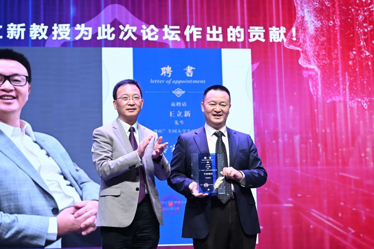 (重庆移通学院校长吕翊为王立新教授颁发“古剑山”全国大学生网络攻防大赛专家顾问聘书)