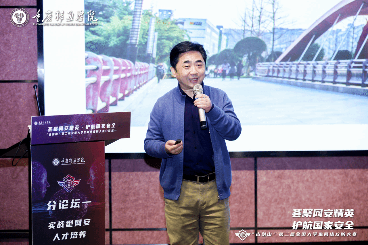 重庆邮电大学网络空间安全与信息法学院博导陈龙教授以“安全类实战型人才培养探索与实践”为主题,结合重庆邮电大学经验,分享了安全类人才培养的创新路径。他强调,实战能力需通过解决真实问题来锤炼,尤其在电子数据取证、司法鉴定等领域。他特别指出,实战人才需兼具技术深度与法律素养,未来将进一步深化校企协同,打造西部网络安全人才高地。