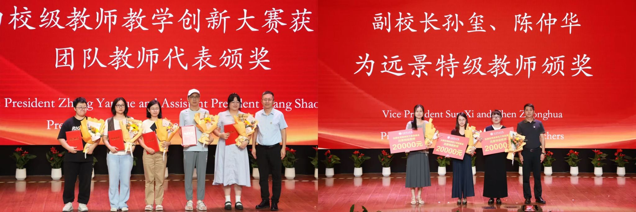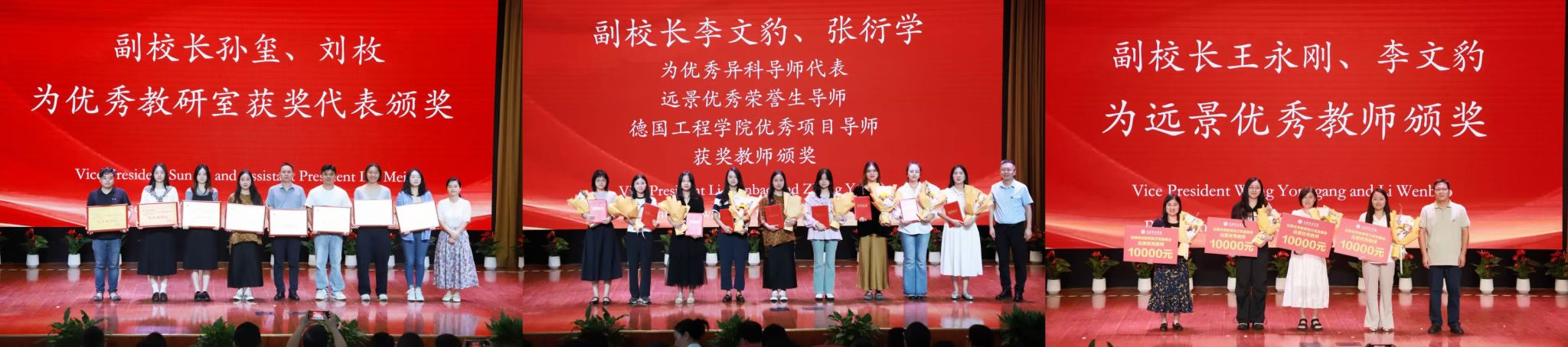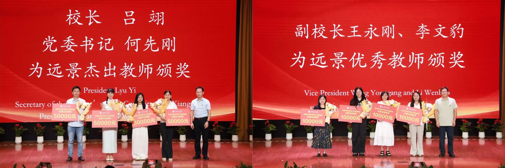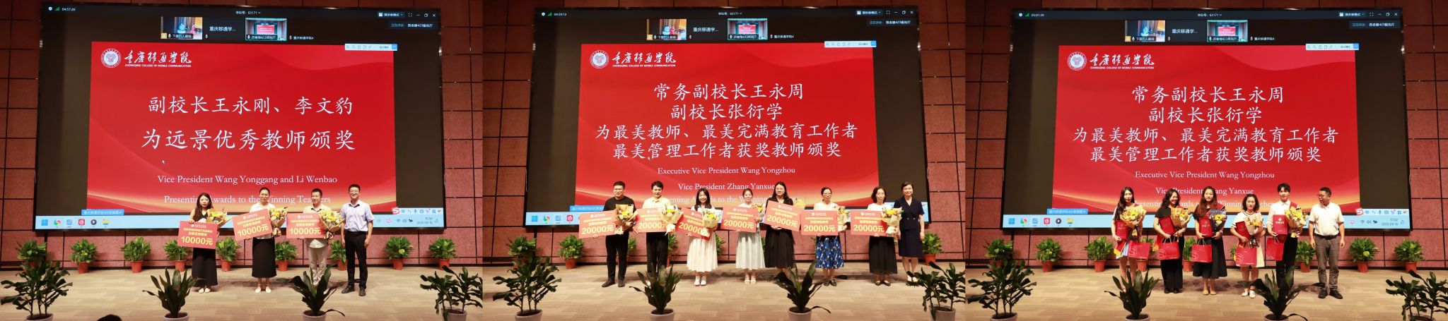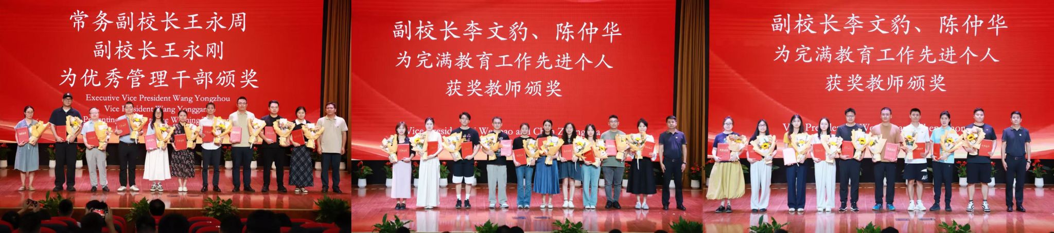表彰环节在激昂的乐声中进行,全体在家校领导为赵瑞玉等512名“优秀教职工”,余晓枚等11名“最美教师”“最美完满教育工作者”“最美行政管理工作者”等获奖者颁奖。