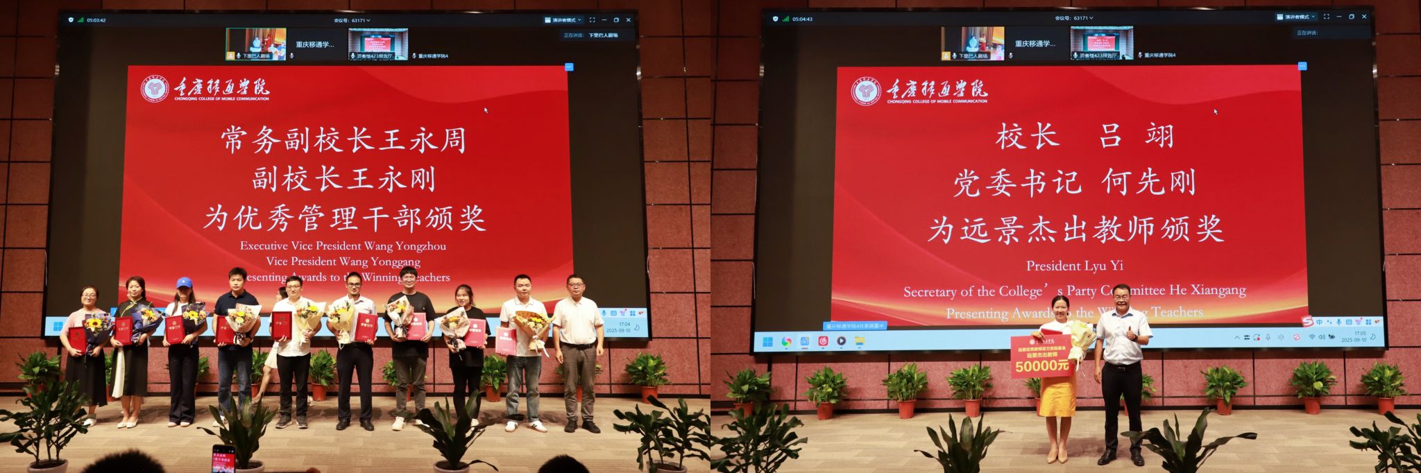教师是文明的传承者,是塑造灵魂的工程师,是教育强国建设的基石。9月10日下午,重庆移通学院在双校区同步举行庆祝第41个教师节暨优秀教职工表彰大会,集中对过往一年先进集体与优秀个人进行表彰。全体校领导、二级单位负责人、科级及以上管理干部、教研室负责人及受表彰教师、教师代表、新进教师等参会。大会由重庆移通学院常务副校长周伟主持。