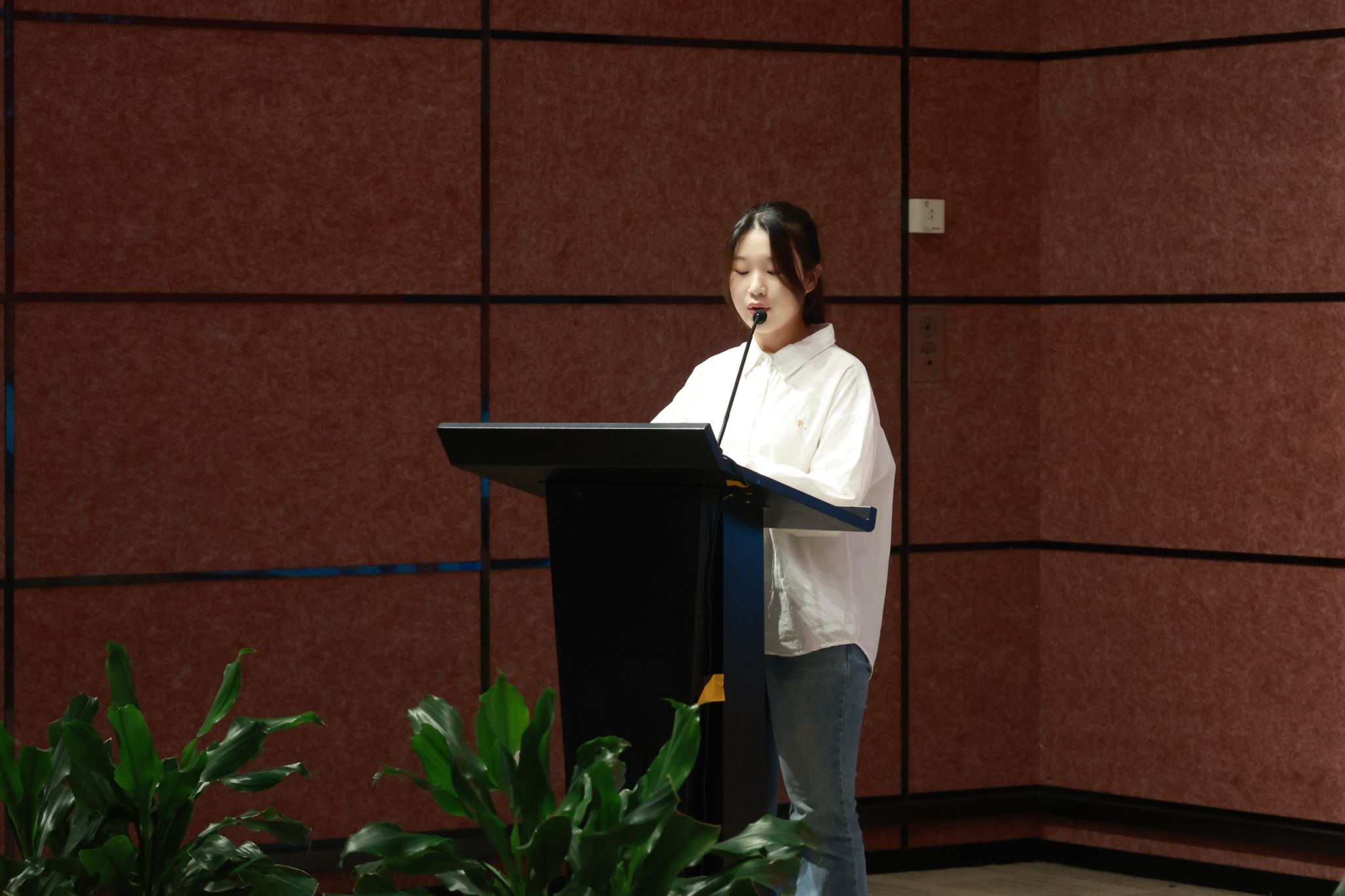 大数据学院、横山书院2022级学生代表刘昕用“浪浪山的小猪妖”作喻,致敬每一位“珍视羽毛箭的微光”的老师。她感谢学校的“四位一体双院制”把懵懂少年引向辽阔星空,更感恩老师用深夜的灯火、鼓励的眼神和坚定的语气,赋予全体学子走出“浪浪山”的勇气与底气。祝词最后,她代表全体学生向老师深深鞠躬,道一声“节日快乐”。